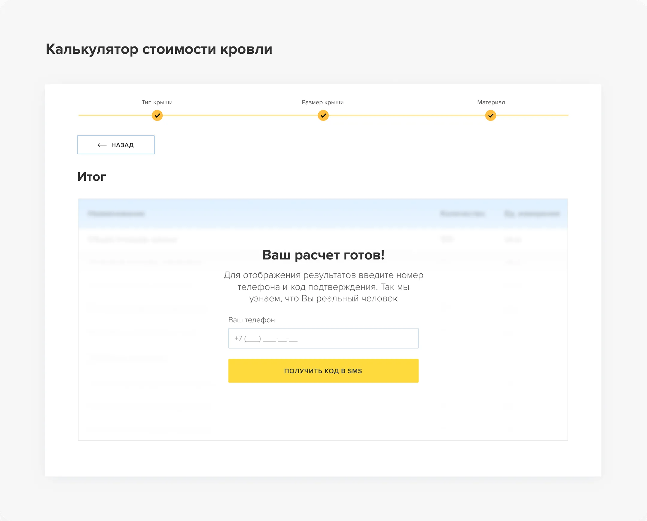 Чтобы мотивировать пользователя оставить телефон, мы не прятали расчет полностью. В финале он видел превью реальной сметы. Это снимает недоверие и доказывает ценность расчета, повышая конверсию в контакт.